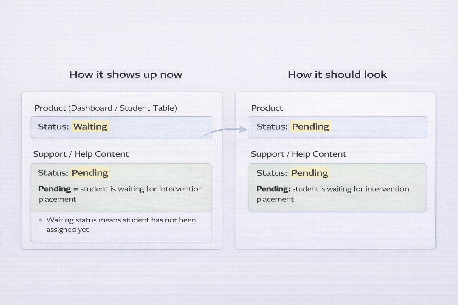 Less explanation during implementationFewer support tickets clarifying the same workflowClearer reporting language for district teamsOne shared definition across teams and surfacesLess internal cleanup when workflows changeFaster handoff between onboarding, support, and product